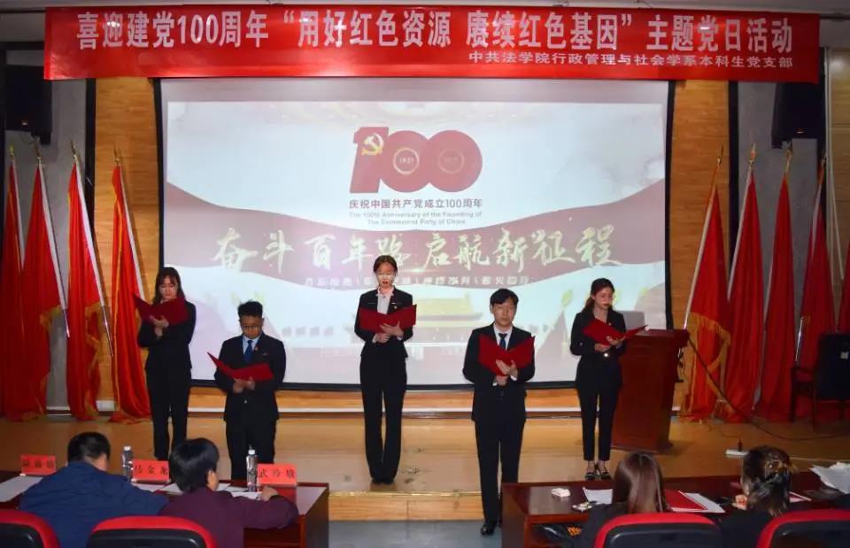 栉风沐雨一百载,春华秋实谱华章。为庆祝中国共产党成立100周年,深化当代老员工对党史教育的理解与认识,5月6日下午6点,公司行政管理与社会学系本科生党支部在怀远校区英才报告厅举办喜迎建党100周年“用好红色资源,赓续红色基因”主题党日活动,副经理马金龙、党支部书记武玲娥、行社系主任陆筱璐出席,支部全体党员、发展对象、入党积极分子到场参加。活动由2018级行政管理班王丹主持。