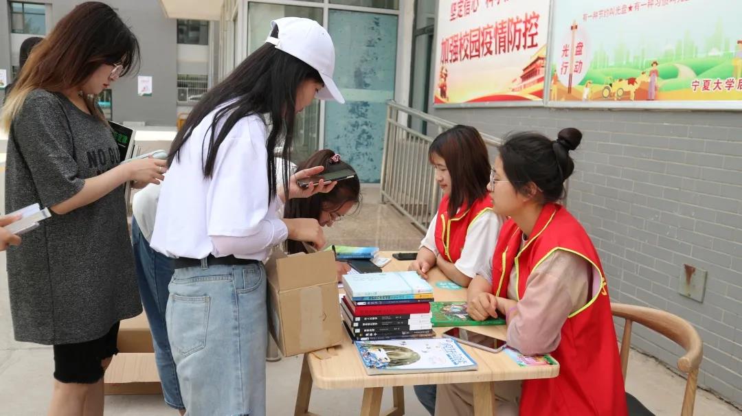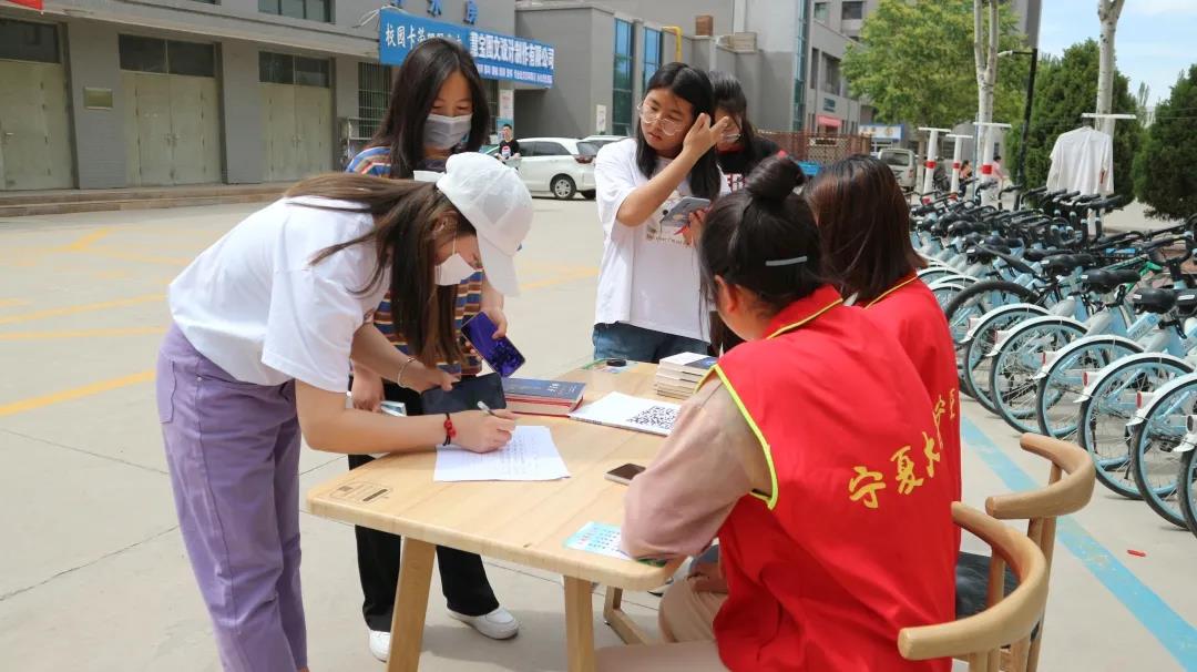 5月28日下午,体育平台官网沙枣树志愿者协会体育平台官网分会在体育平台官网贺兰山校区兰馨苑餐厅门口举办“爱满人间,情暖人心”图书捐献活动。