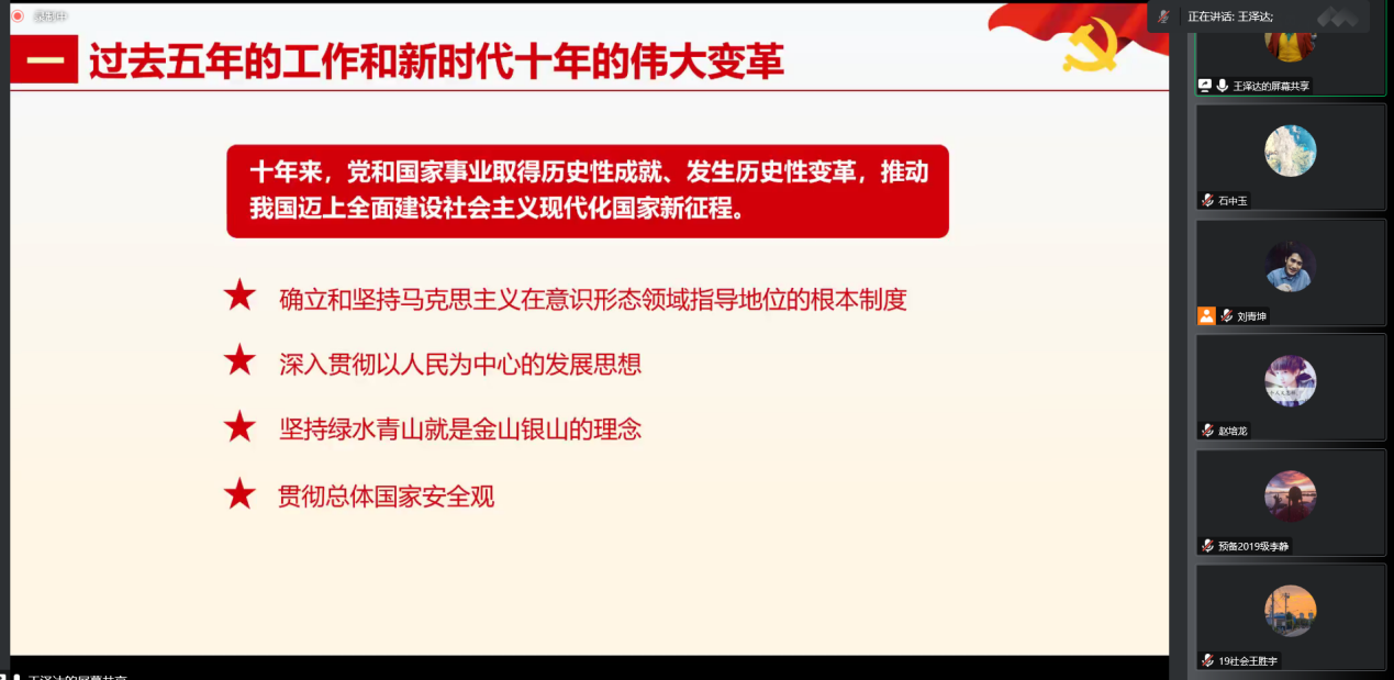 为深入学习党的二十大精神,加强党员思想政治教育,保持党支部的政治性、先进性,2022年10月26日,行社系本科生党支部组织员工党员深入学习党的二十大报告,并就学习二十大报告的所思所想进行交流分享。