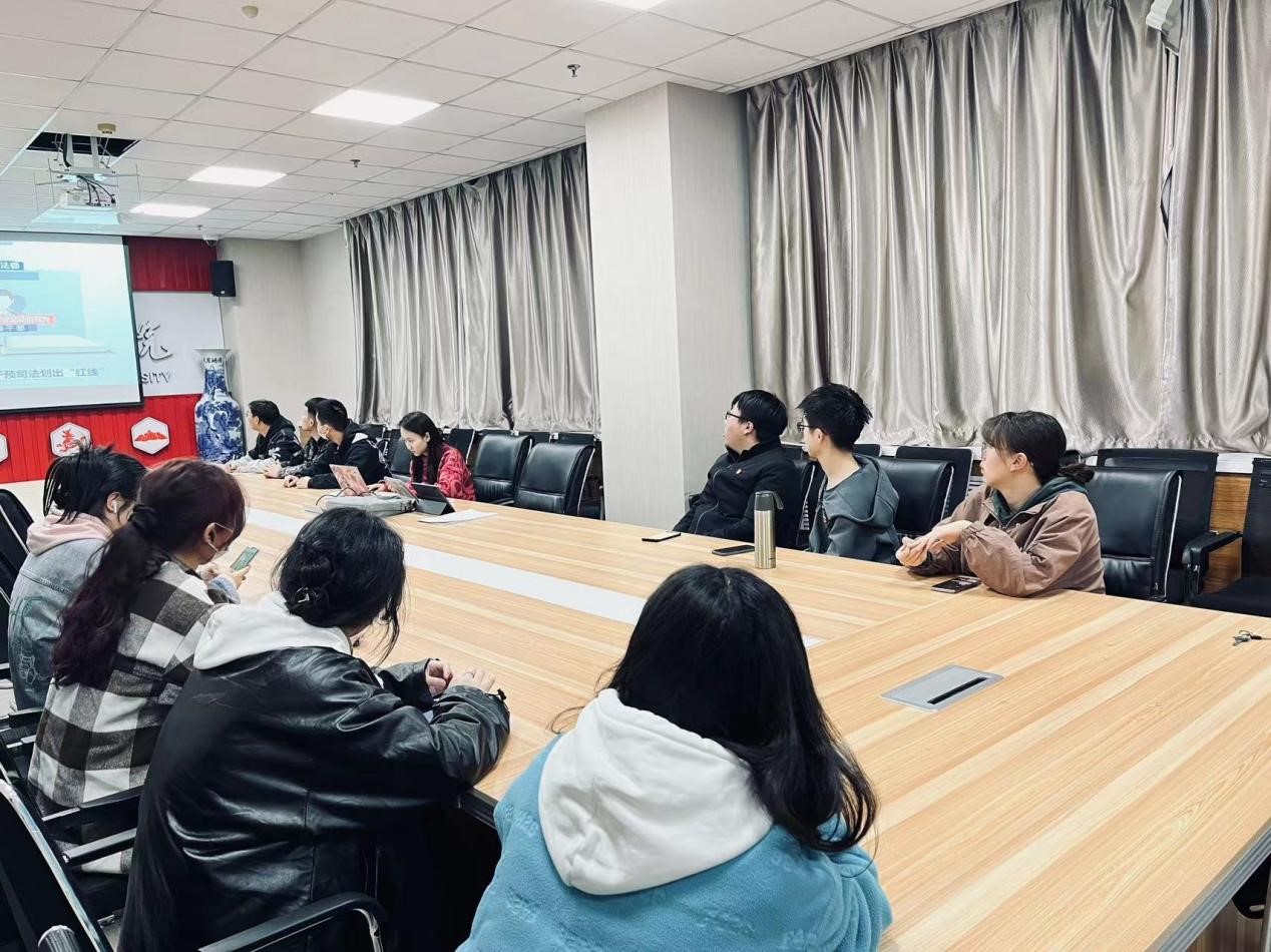 2023年4月6日,法律系本科生党支部于文荟楼801进行廉政专题教育学习,全体支部党员参加,其中2019级支部党员线上参会。学习内容为中共中央办公厅、国务院办公厅印发《领导干部干预司法活动、插手具体案件处理的记录、通报和责任追究规定》和《国有企业领导人员廉洁从业若干规定》。领学人为刘龙震同志,支部书记何磊与会总结。